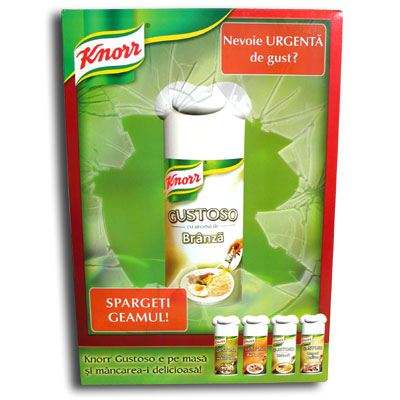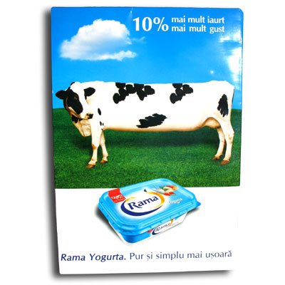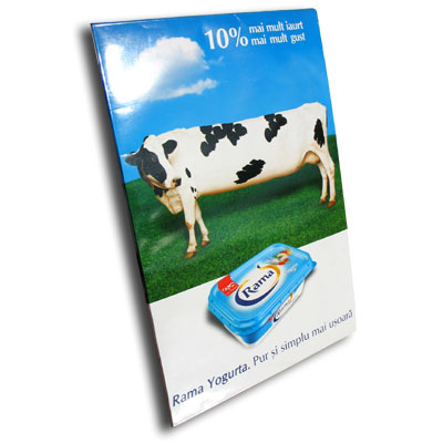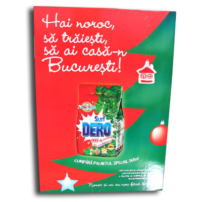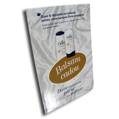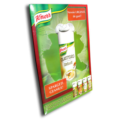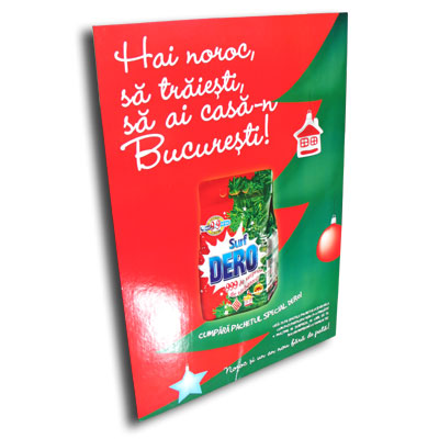 Descriere produs : Show cards , sistem de prezentare realizat din carton duplex de 450 g/mp montat pe structura de carton ondulat CO5 . Poate avea si picior decupat chiar din corpul suport sau poate fi atarnat ca un ceilling hanger .
